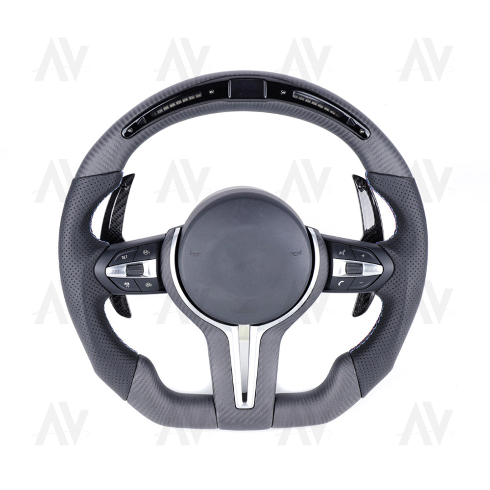 BMW FXX MATTE CARBON FIBRE & LEATHER LED FLAT BOTTOM CUSTOM STEERING WHEEL